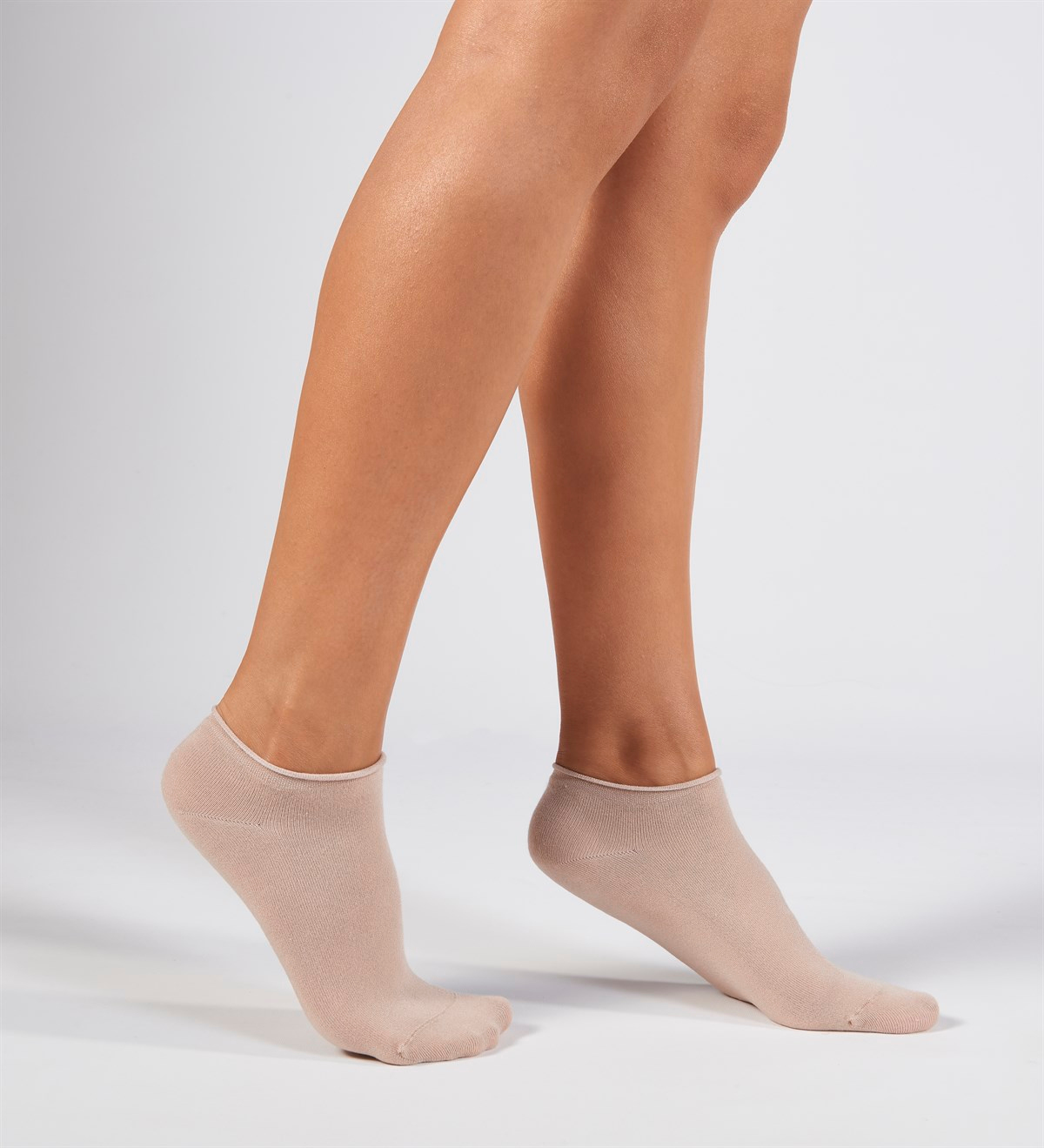 3'lü Paket Su Yeşili,Bej Ve Lila Modal Lastiksiz Dikişsiz Kadın Patik Çorap